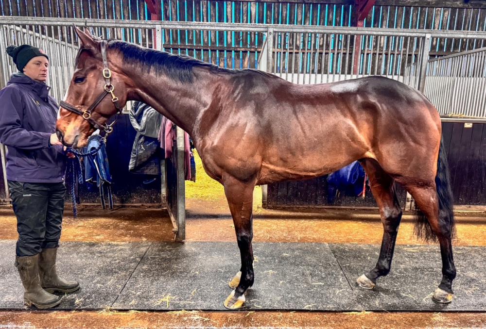Our vet is here this morning for the usual Tuesday visit while this week’s movers and shakers in the BHA handicap charts were Does He Know up 6 to 147, I Spy A Diva down 1 to 118 and Wild Goose up a whopping 12 to 115.