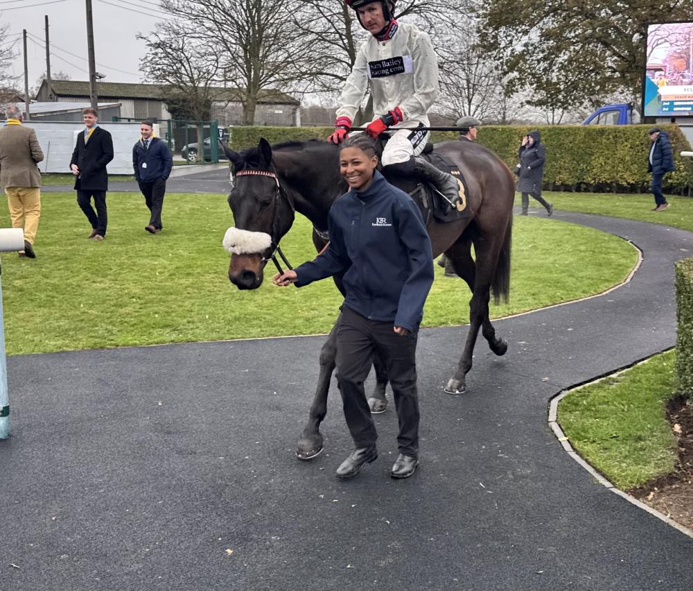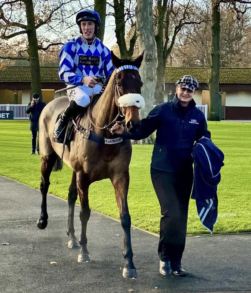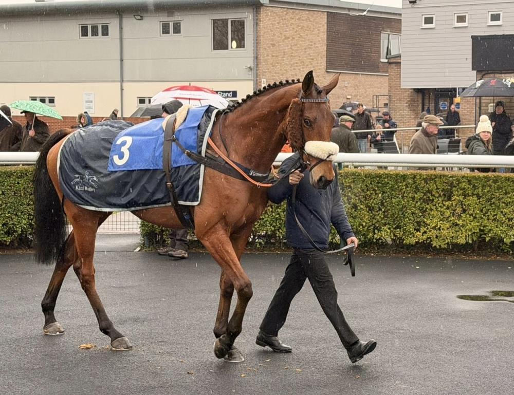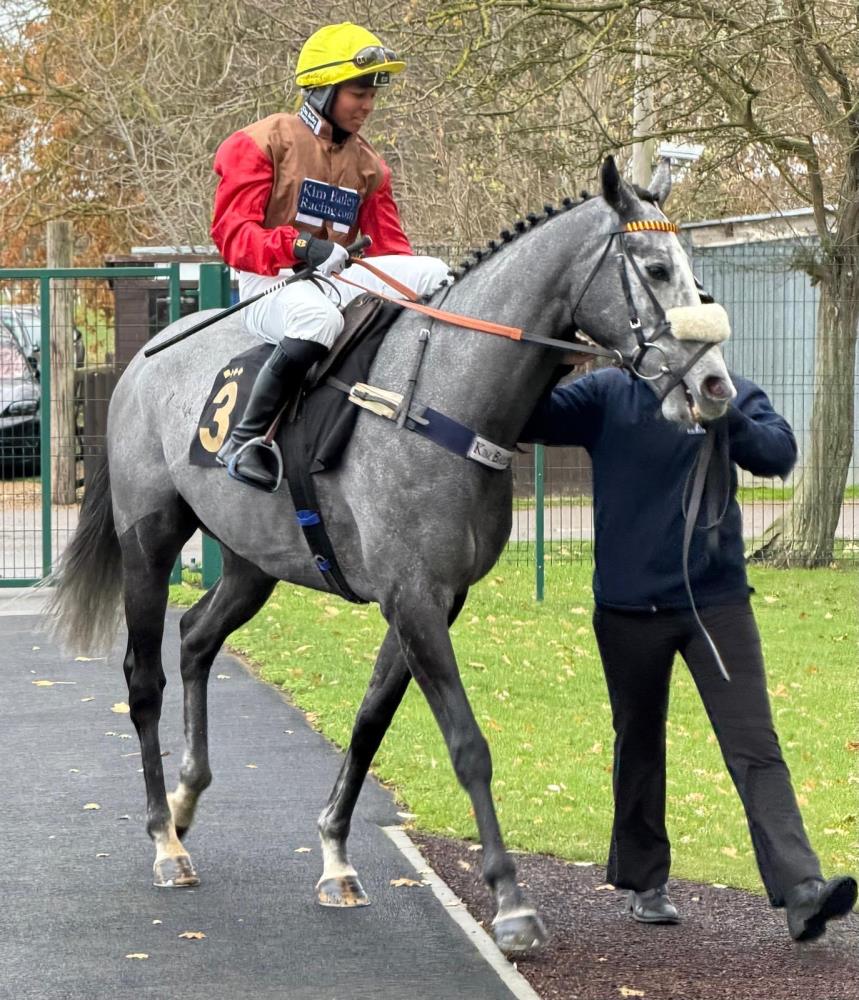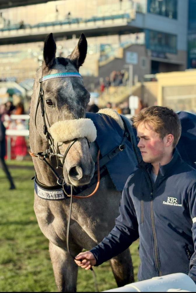 Step Ahead who won best turned out is every inch a chaser.. he has the size, scope, the whole lot, and you can almost see the hurdles getting in his way already. Give him a year and a fence and he’ll really come into his own. But for now, that was a properly good run first time over hurdles, and we’re very happy with him as are his owners Phil and Gill Andrews..