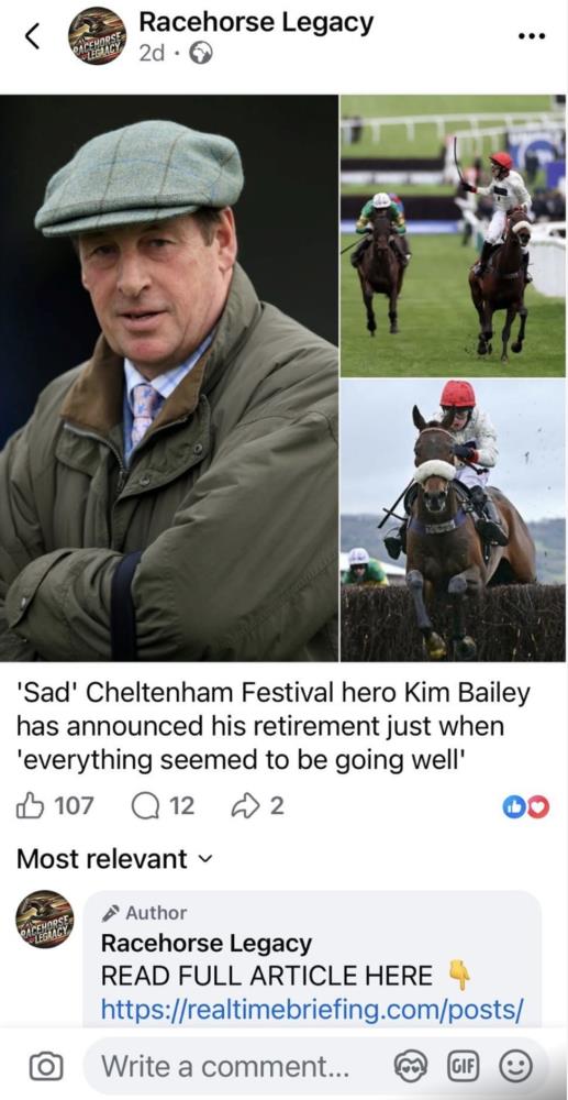 All this fuss.. it turns out to have come down from a Facebook post that didn’t quite finish the story. It was simply about us having to retire Chianti Classico but AI took it one stage further.. Many clearly didn’t read past the first line and leapt straight to the idea of thinking, “Goodbye Kim Bailey, he’s retired!”