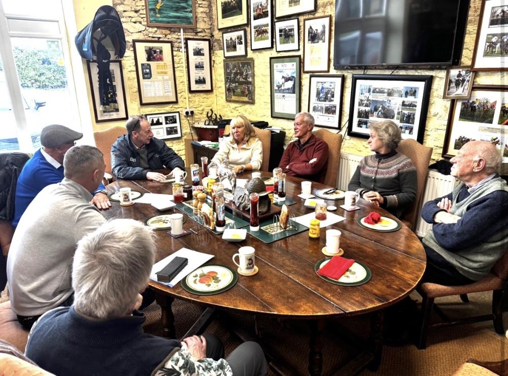 Craig Thomas and his father Bob, Simon and Caroline Hartley, Caroline Tiley, Terry Bowen and Margaret Fleming were all here for a Morning on the gallops and breakfast.. bought at a Kidscape charity auction held at The Frogmill.