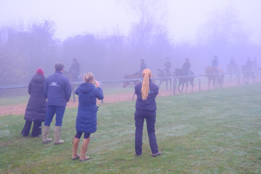 Ros Wilton, Lynne Morrey, Ruby Watson, Karen Pare, Andrew and Nicola Coghill were all here for a morning on the gallops and breakfast.