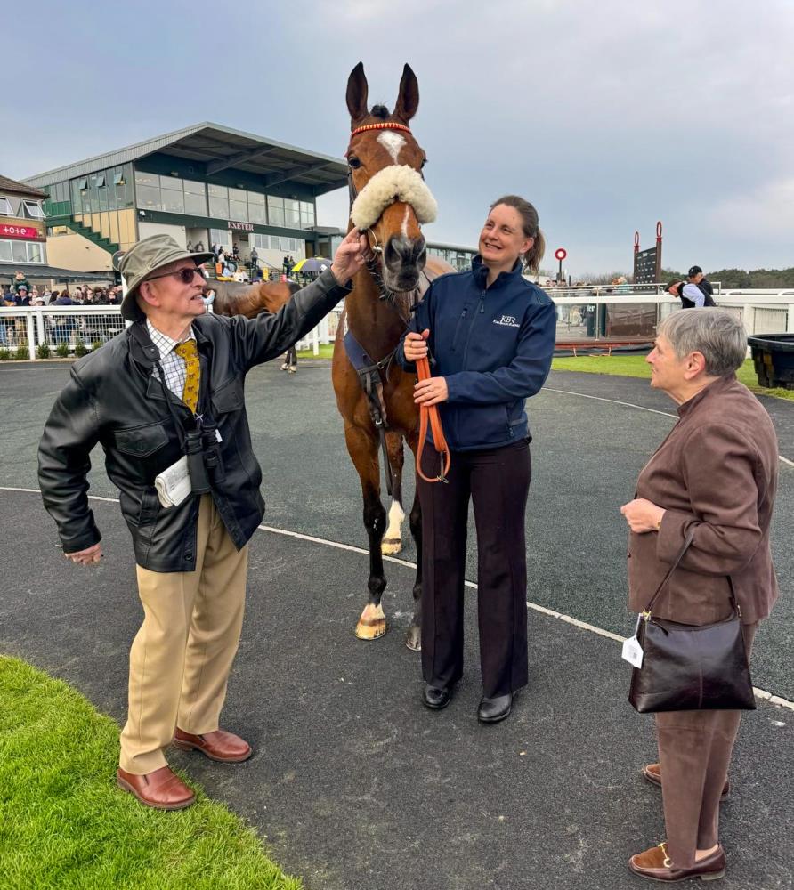 Karen Masters, Mary Rolfe and Vanessa Dawkins called in to see their KBRS youngster by Pether’s Moon out of Gales Present gelding.. who is currently with Martin Jones.